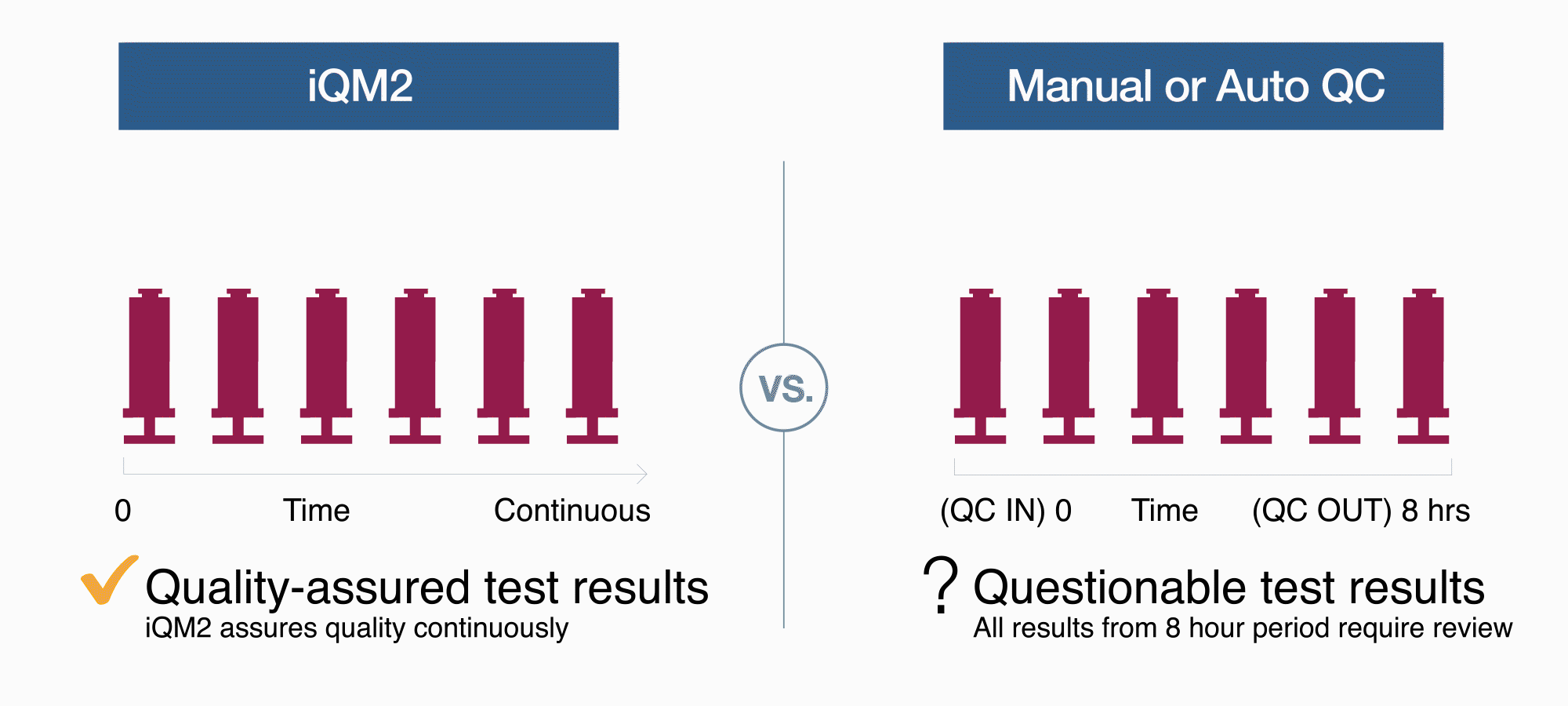 iQM2 with IntraSpect™ technology provides intelligent analyzing—automated quality assurance with every sample, continuously and in real-time, unlike traditional (auto or manual) QC offerings. Error detection time is reduced from hours to minutes and errors are automatically corrected and documented for a complete picture of quality. Integrated on the GEM Premier 5000 system, iQM2 assures quality before, during and after sample analysis, for improved patient care and efficiency.